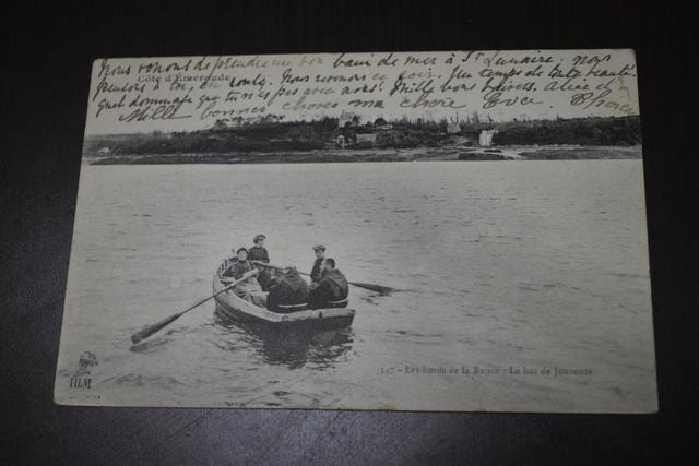 About an old postcard: Les bords de la Rance – Le bac de Jouvente from 1905