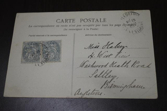 Rare old postcard 1905 from France AK was sent to England and is in very good condition (Carte Postale) 2 very old stamps on the back present France 1890 5Franc blue.