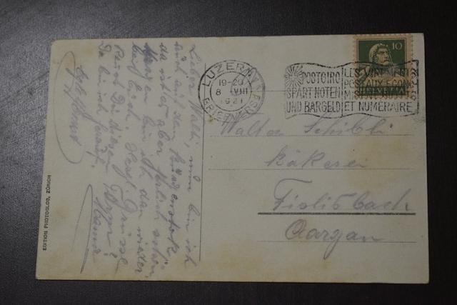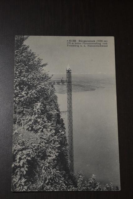 Bürgenstock passenger elevator, 170 meters high, Hammetschwand. Vintage postcard from 1921. Postcard was sent with a Helvetia 10 stamp. Postcard in very good condition, corners slightly rounded.
