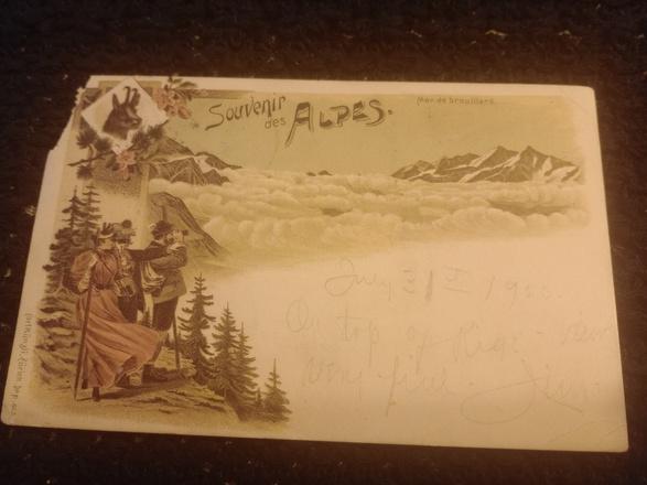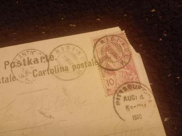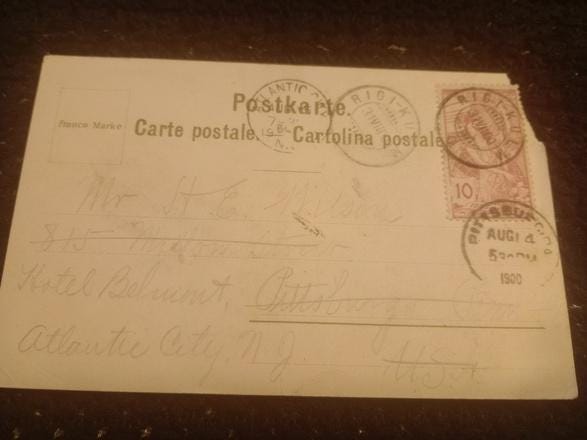 Offer old postcard from 1900 the old postcard is in the USA to Atlantic City included on the back as on the card a Swiss stamp and various stamps Rigi Kulm and American stamps. The card has a slight corner path at the top right