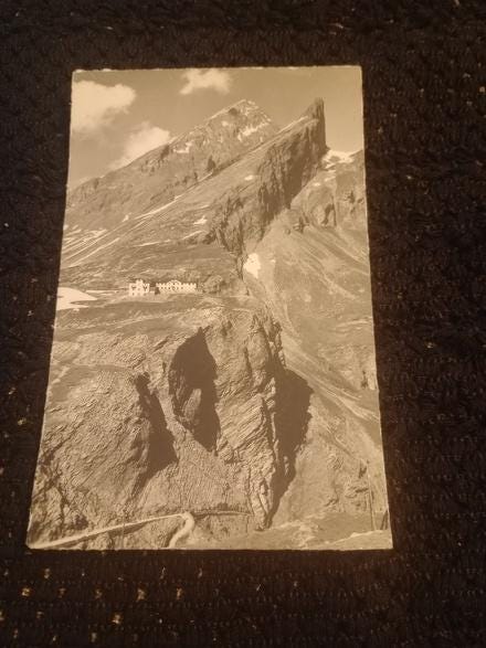 Additionally, the image is a reminder of the post-World War I era, when many people sought refuge and solace in the Alps. The postcard thus represents not only a means of conveying mail and greetings, but also a connection to a time and a way of life that many people found appealing.