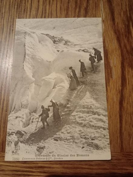 Reflective essay on the historic vintage postcard “Glacier du Bossons” from 1910