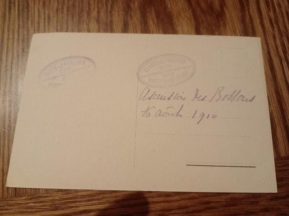 The Glacier du Bossons, stretching majestically in the French Alps, is known for its impressive glaciers and dramatic landscape. This postcard not only depicts breathtaking scenery, but also the way people interacted with nature in the early 20th century. The postcard depicts rolling valleys, snow-capped peaks, and a bright blue sky, highlighting the majesty of the landscape. The colors are faded, and the fine details evoke a nostalgic feeling, transporting me to a world where technology had yet to fully influence people's everyday lives.