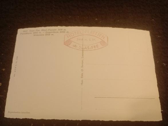 Offering a beautiful old postcard (photograph) of Hotel Plattjen Saas Fee from 1921. The postcard is unused and in very good condition.
