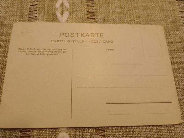 Reflective essay on the vintage historical postcard of the Aletsch Glacier with Merjensee