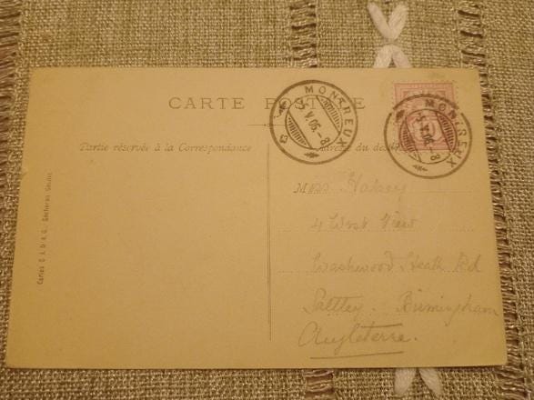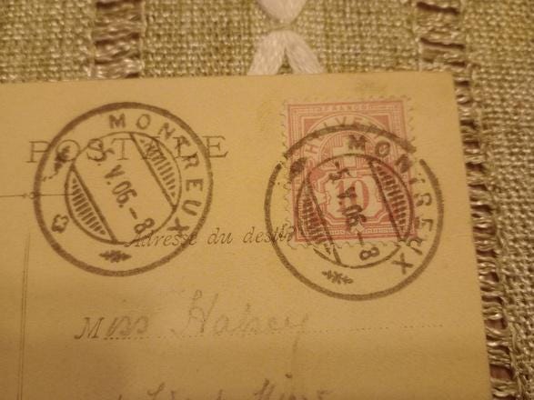 Offer old beautiful postcard Vevey Le Port from the year 1906 with many writings. Date 2.05.1906. The card was sent to England and has two postmarks from Montreux and a stamp Helvetia 10
