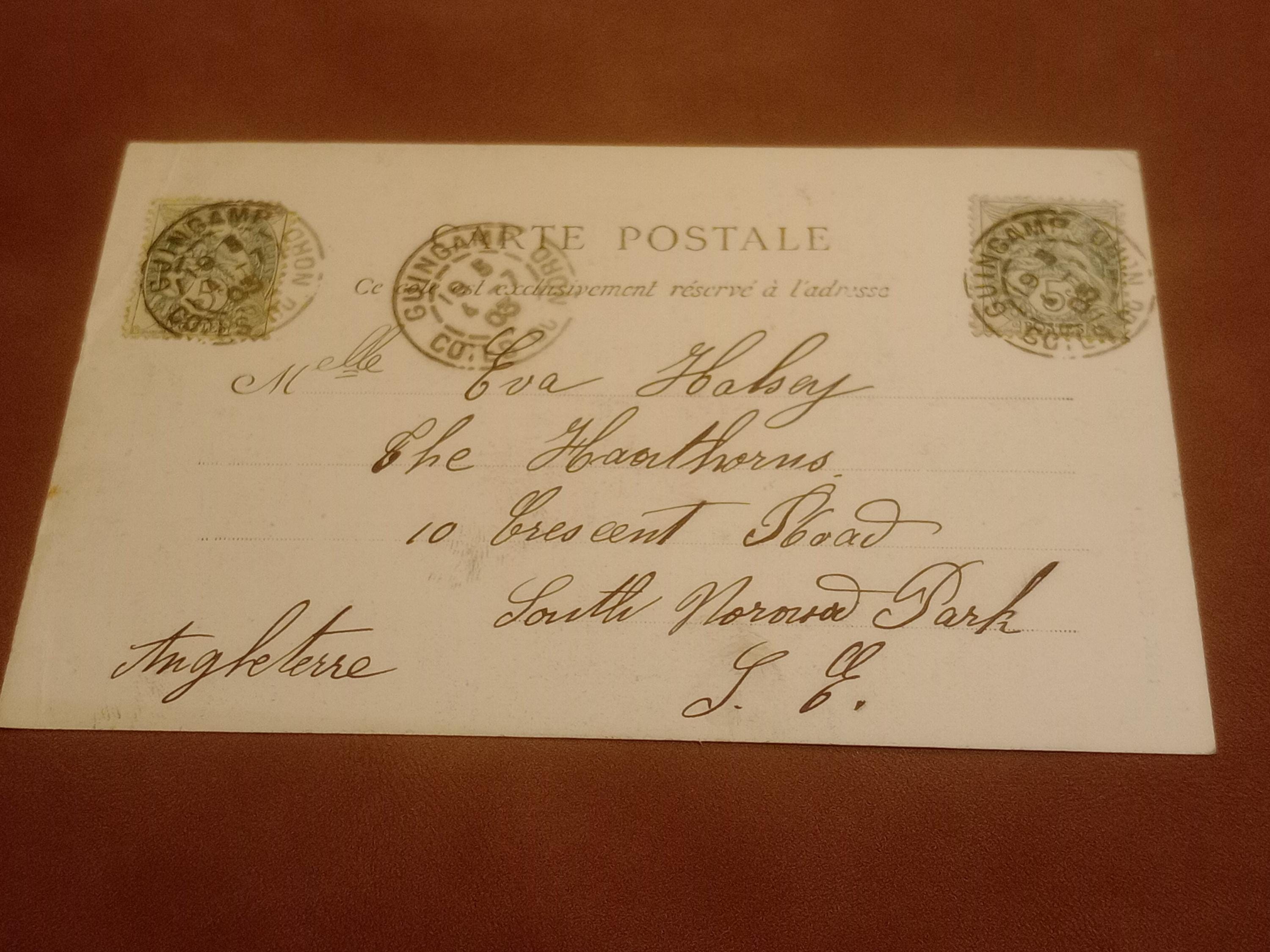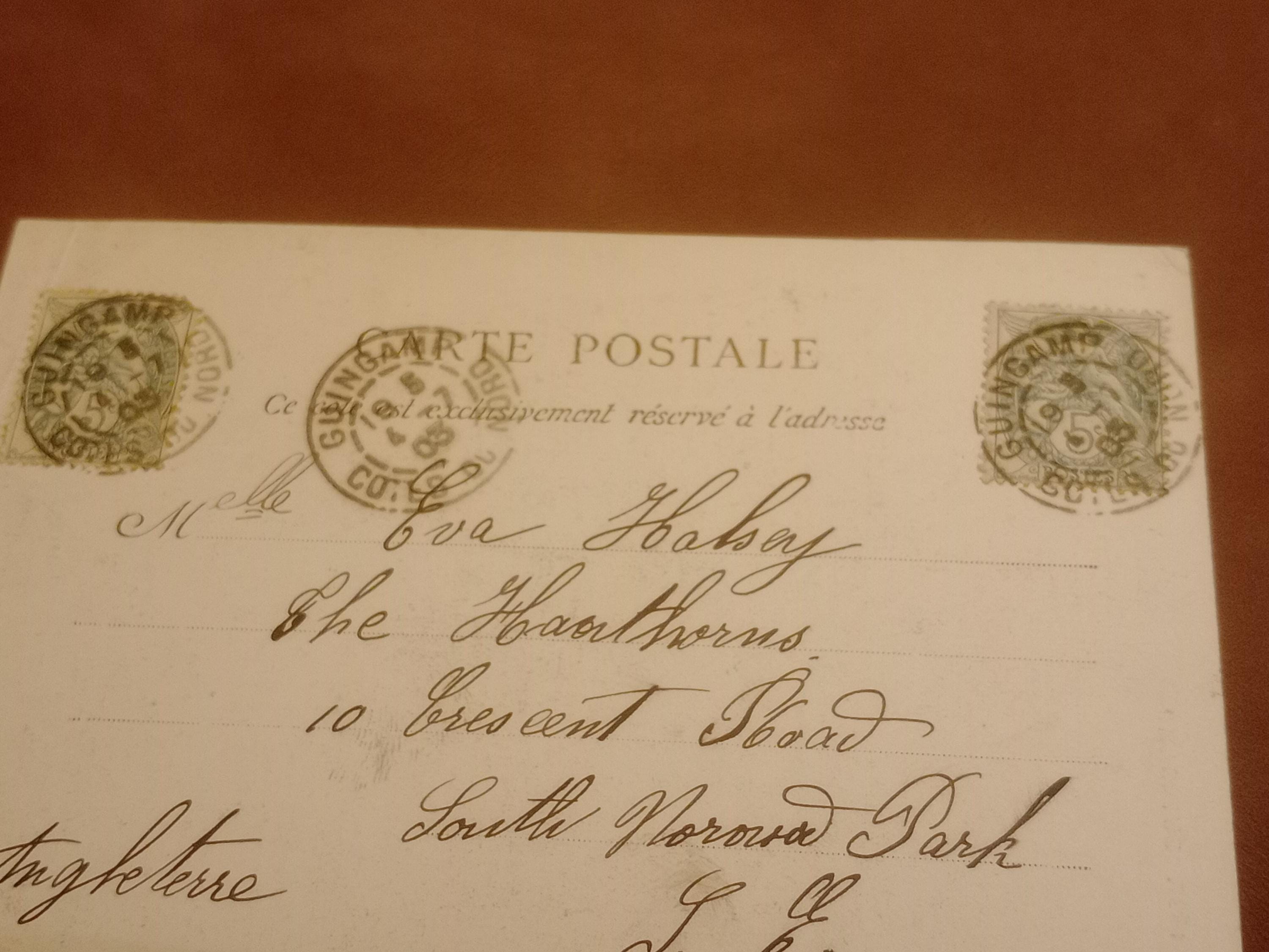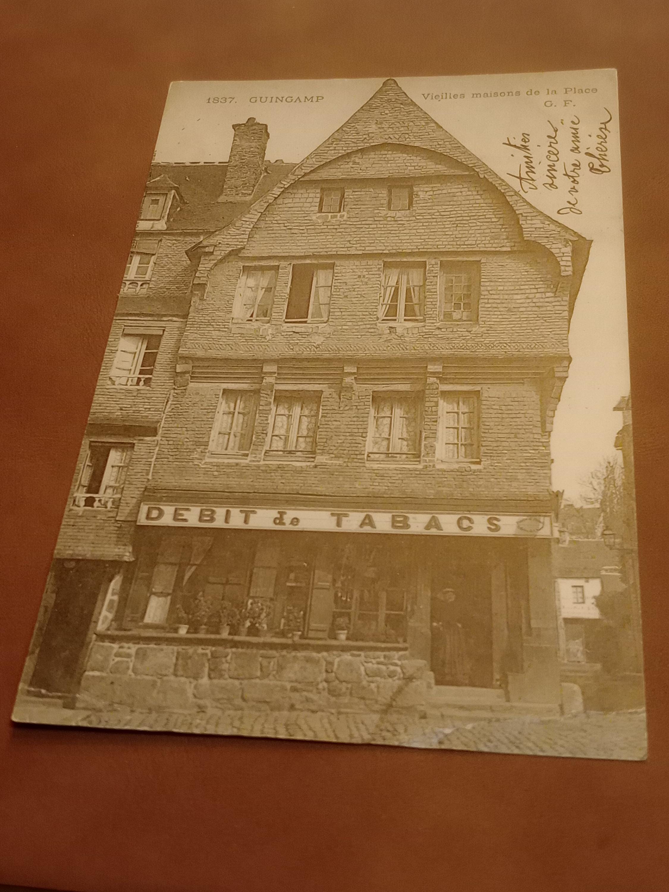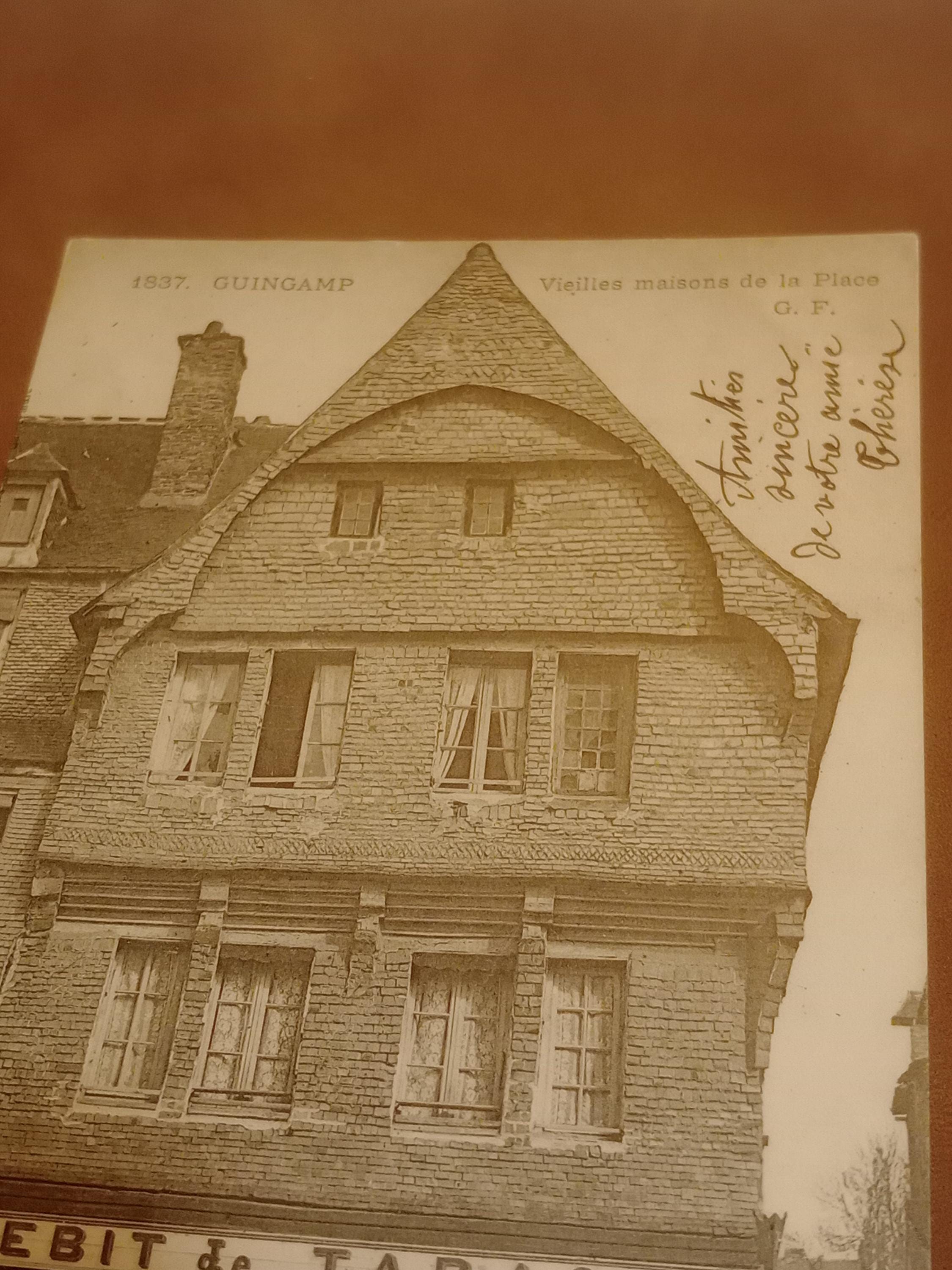 Offering French vintage postcard Guingamp Vieilles maison de la Place. The postcard was sent to England.