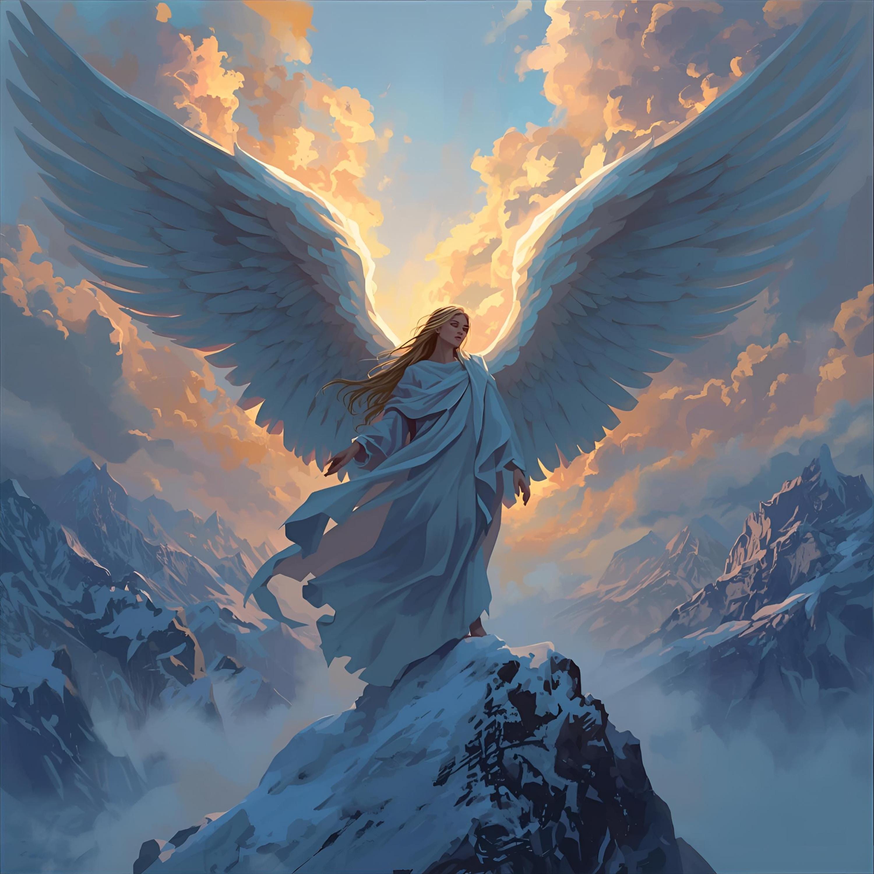 Offer beautiful digital print angel with mountain in the snow