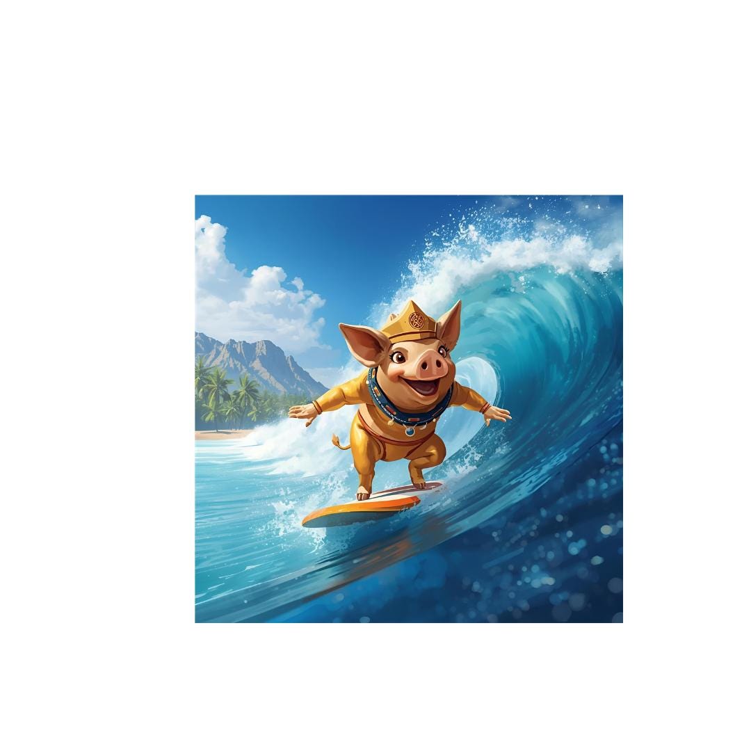 ๐ท๐โโ๏ธ "Ride the waves with style!" Our digital print of the golden pig on a surfboard is the perfect highlight for anyone who loves humor and creativity. Download now and dive in! ๐๐