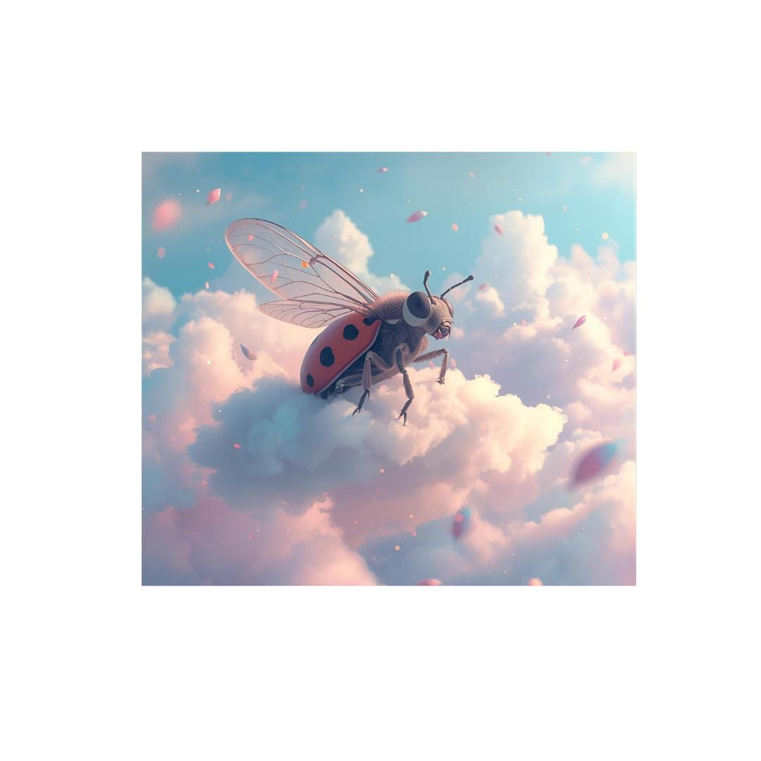 Bring happiness into your home! Maybug Happiness on a Cloud offers high-quality digital prints for a cheerful atmosphere.