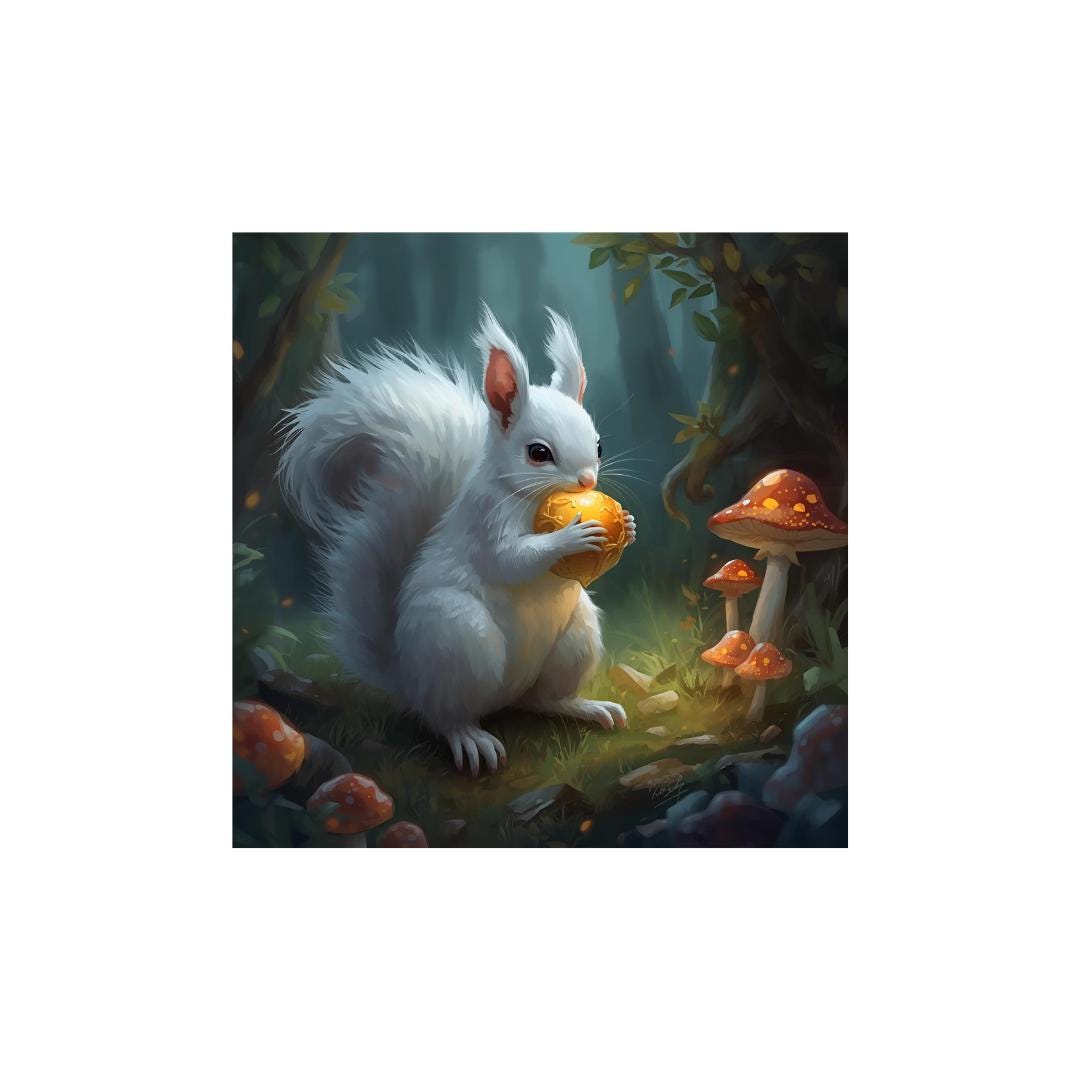 "Experience the delicate beauty of nature in your home! Our stunning digital print of a white squirrel with a vibrant golden nut brings a touch of fantasy and elegance to any room. Perfect for art lovers seeking something special!"