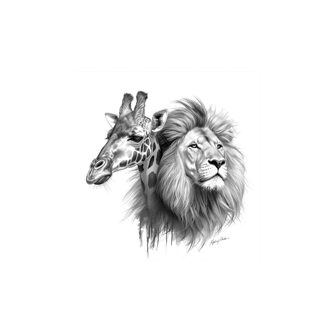 Safari Animal Wall Art Print | AI Digital | Modern Lion and Giraffe Illustration | Wildlife Home Decor | African Animal Artwork Printable