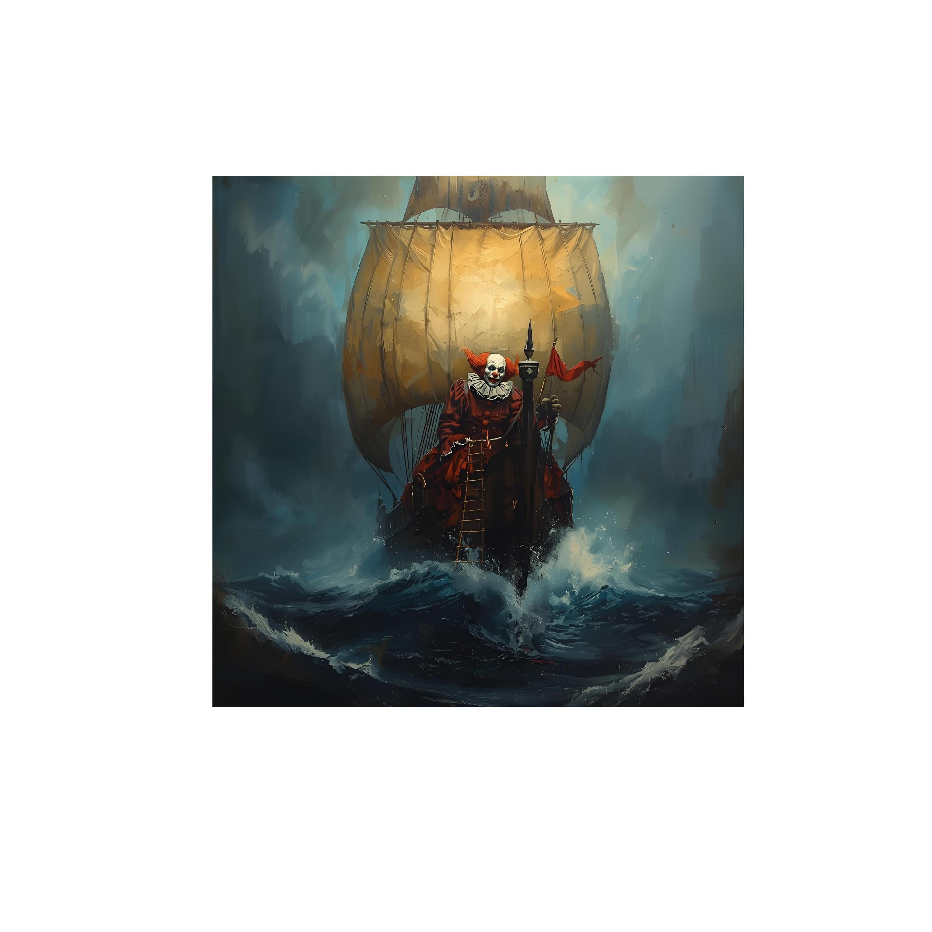 ai horror art, pirate ship art, dark fantasy art, ocean wall decor, creepy clown art, ai nautical art, gothic sea print, fantasy wall art, horror painting, eerie ocean art, ai pirate decor, spooky ship print, dark art design