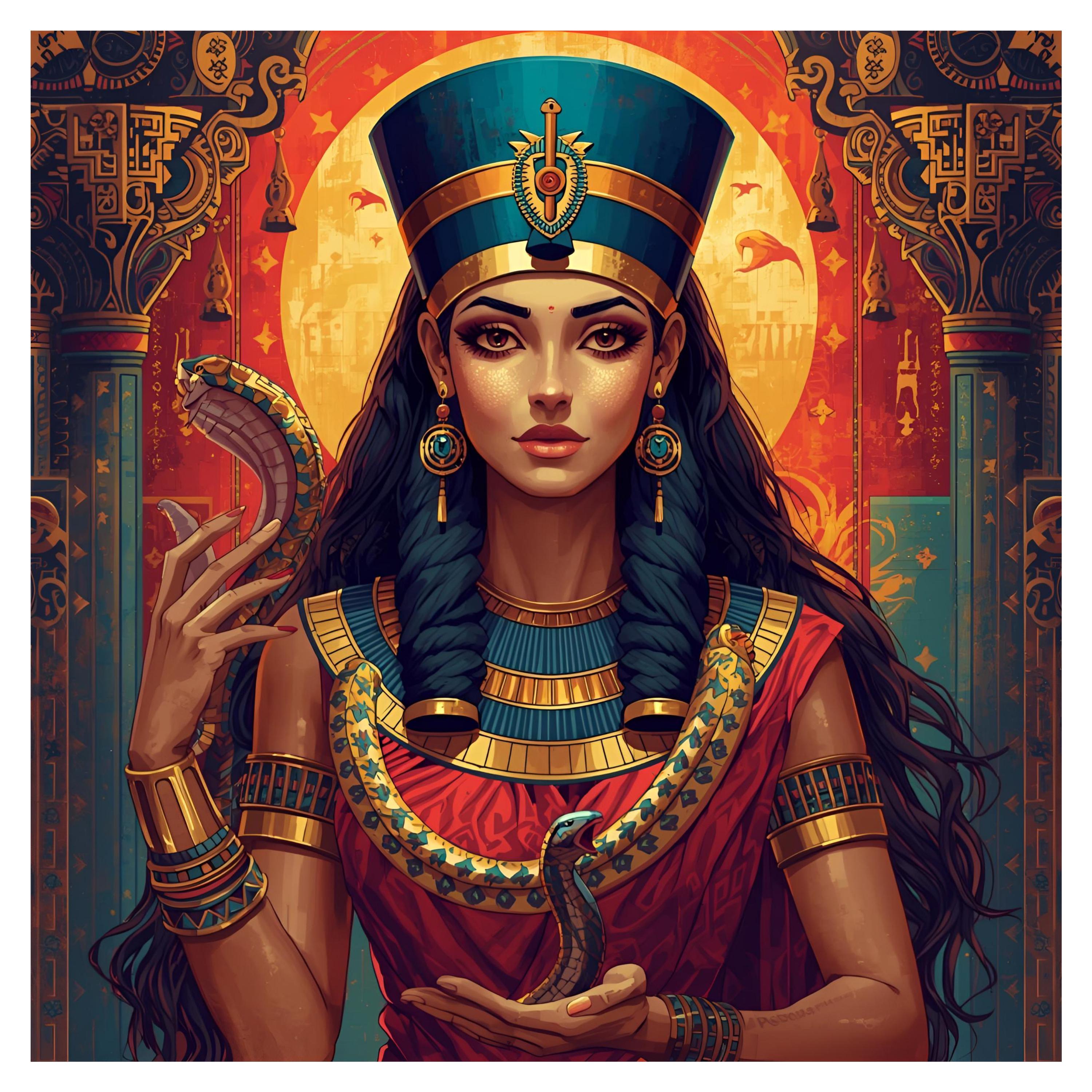 Egyptian Queen Nefertiti with Snake Print | Ancient Goddess Digital Portrait | Mystical Royal Woman Artwork | AI Digital Fantasy Wall Decor