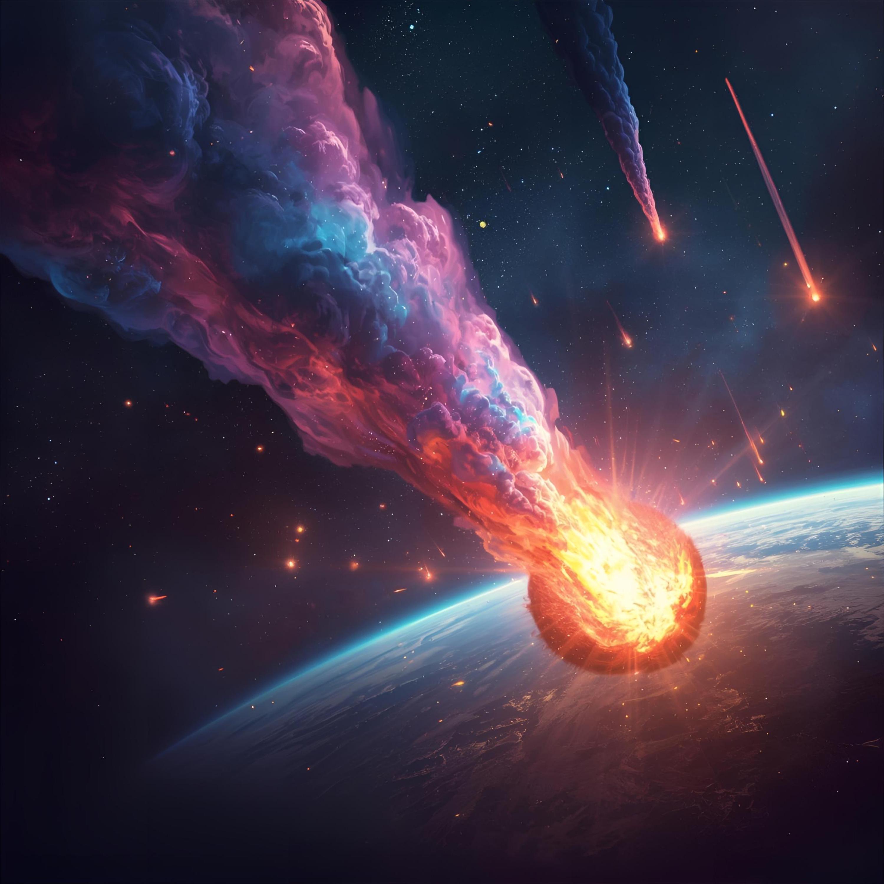 • Artwork: Meteor shower with AI-rendered comet tail and cosmic fireball