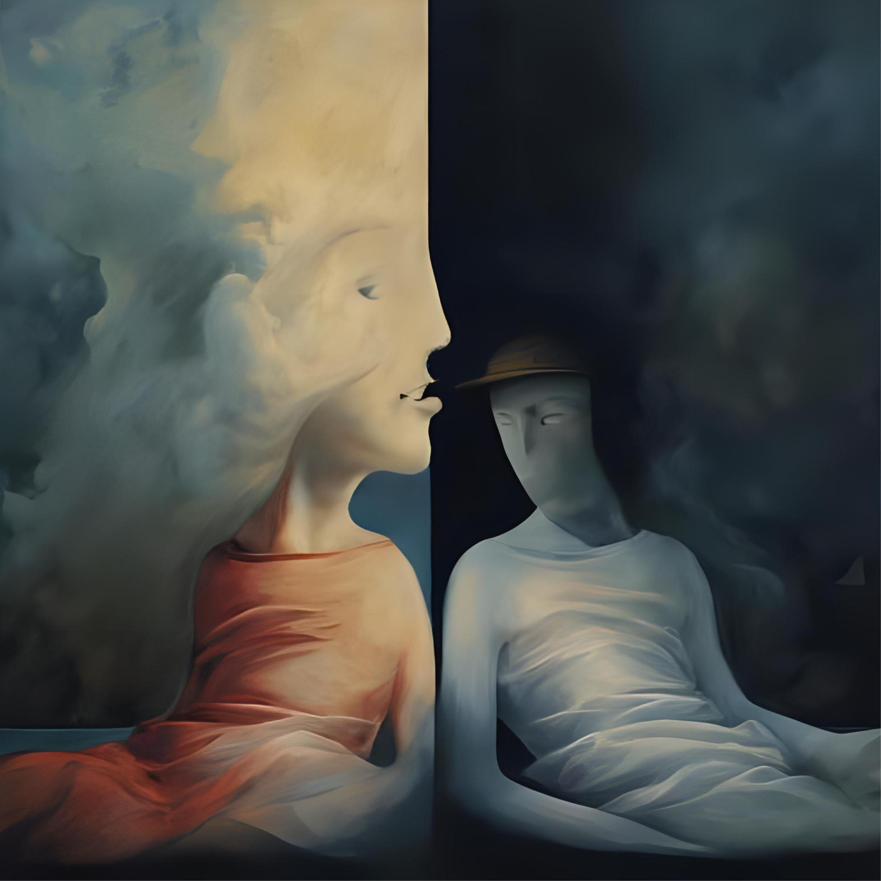 Surreal Dual Portrait | Modern Abstract Human Contrast Digital AI Product | Dreamlike Face Art | Ethereal Misty Deep Reflection Wall Art