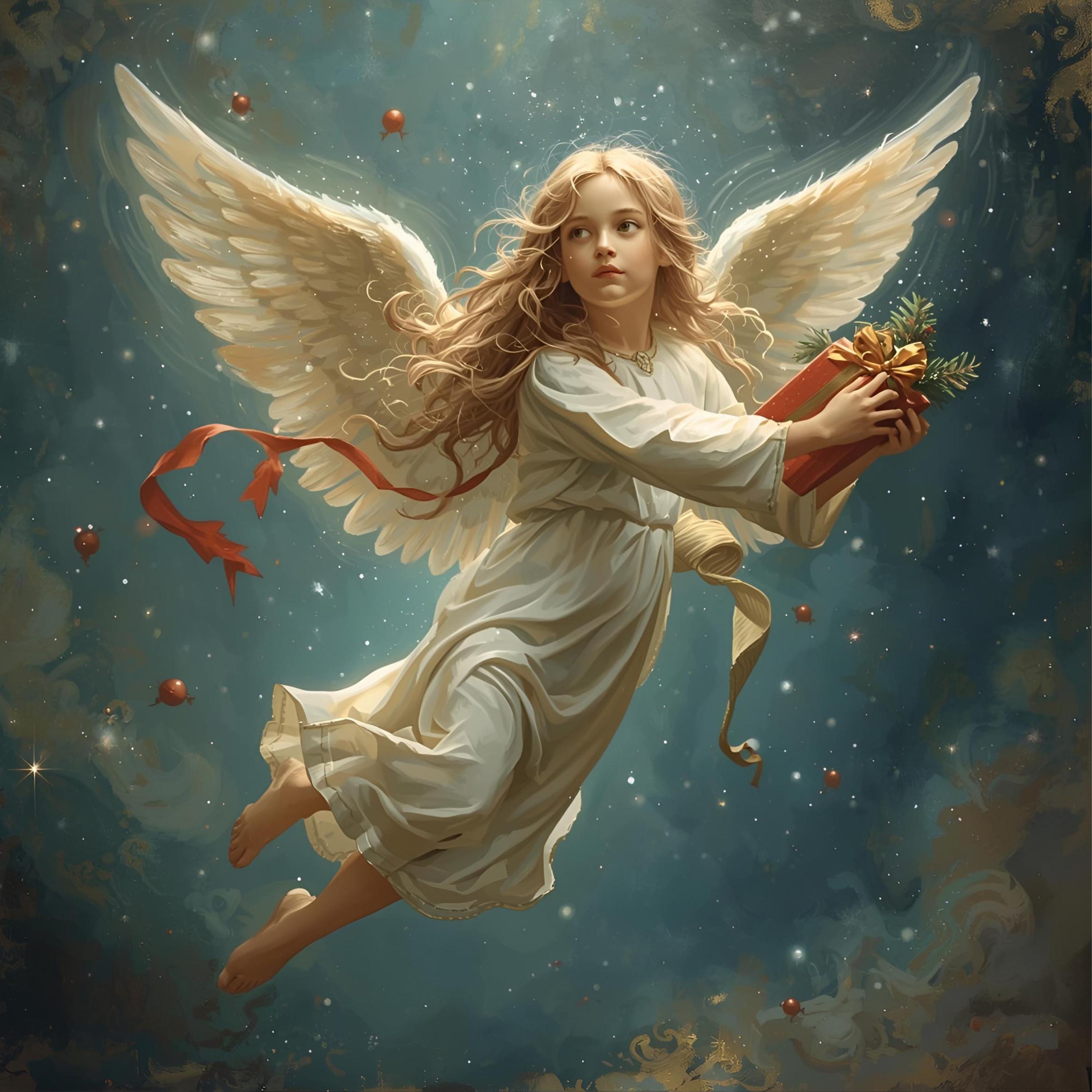 Celebrate the holiday season with this charming digital artwork of a "Baby Angel." Perfect for Christmas, as heartfelt decor, or a personal gift. This beautiful angel with wings, holding a festively wrapped message, radiates warmth, hope, and holiday cheer.
