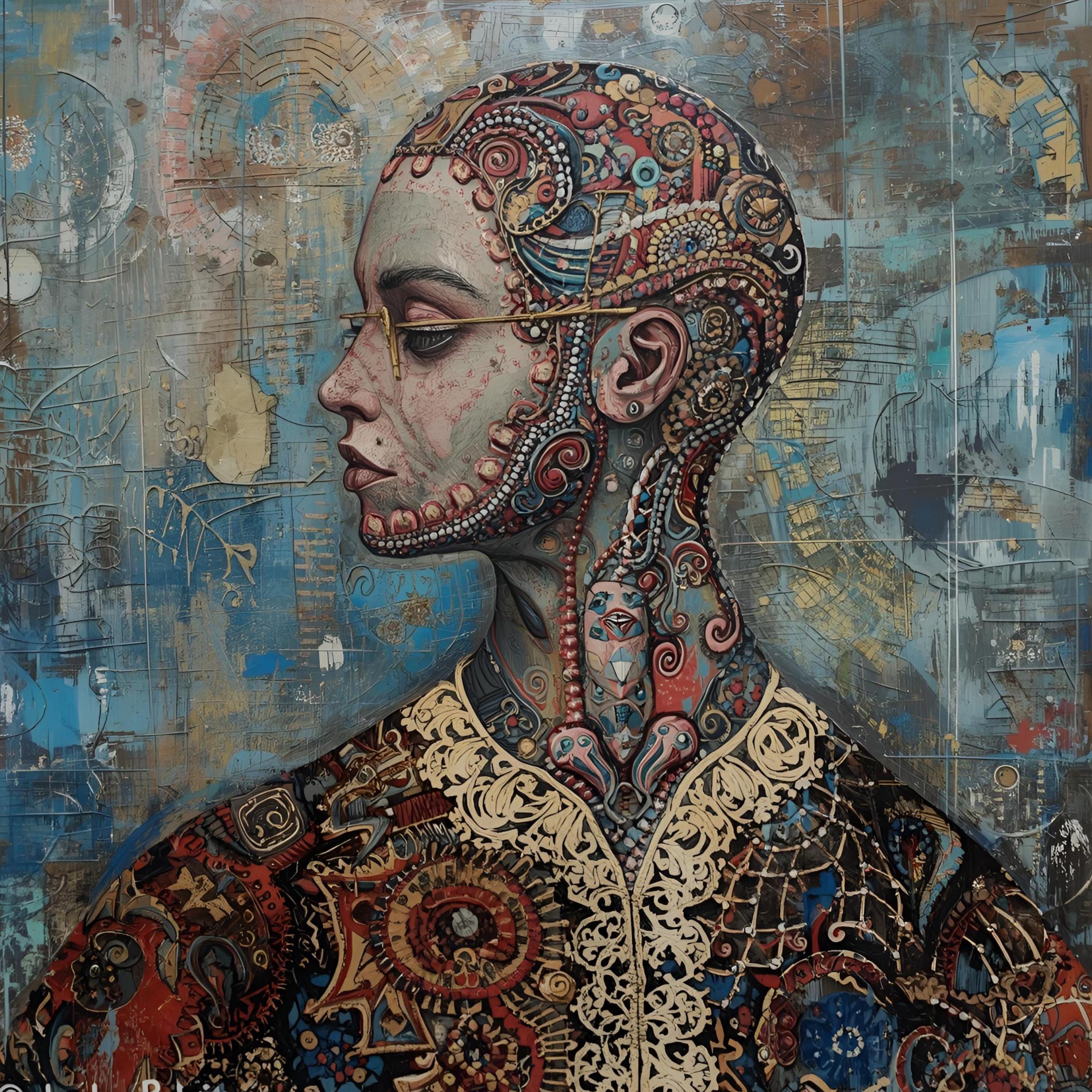 This AI Female Portrait Digital Print explores the harmony between human emotion and artificial intelligence. Its surreal style, vibrant color layering, and imaginative detail make it a centerpiece of any modern interior. Ideal for art collectors, designers, or anyone drawn to digital surrealism and futuristic design.